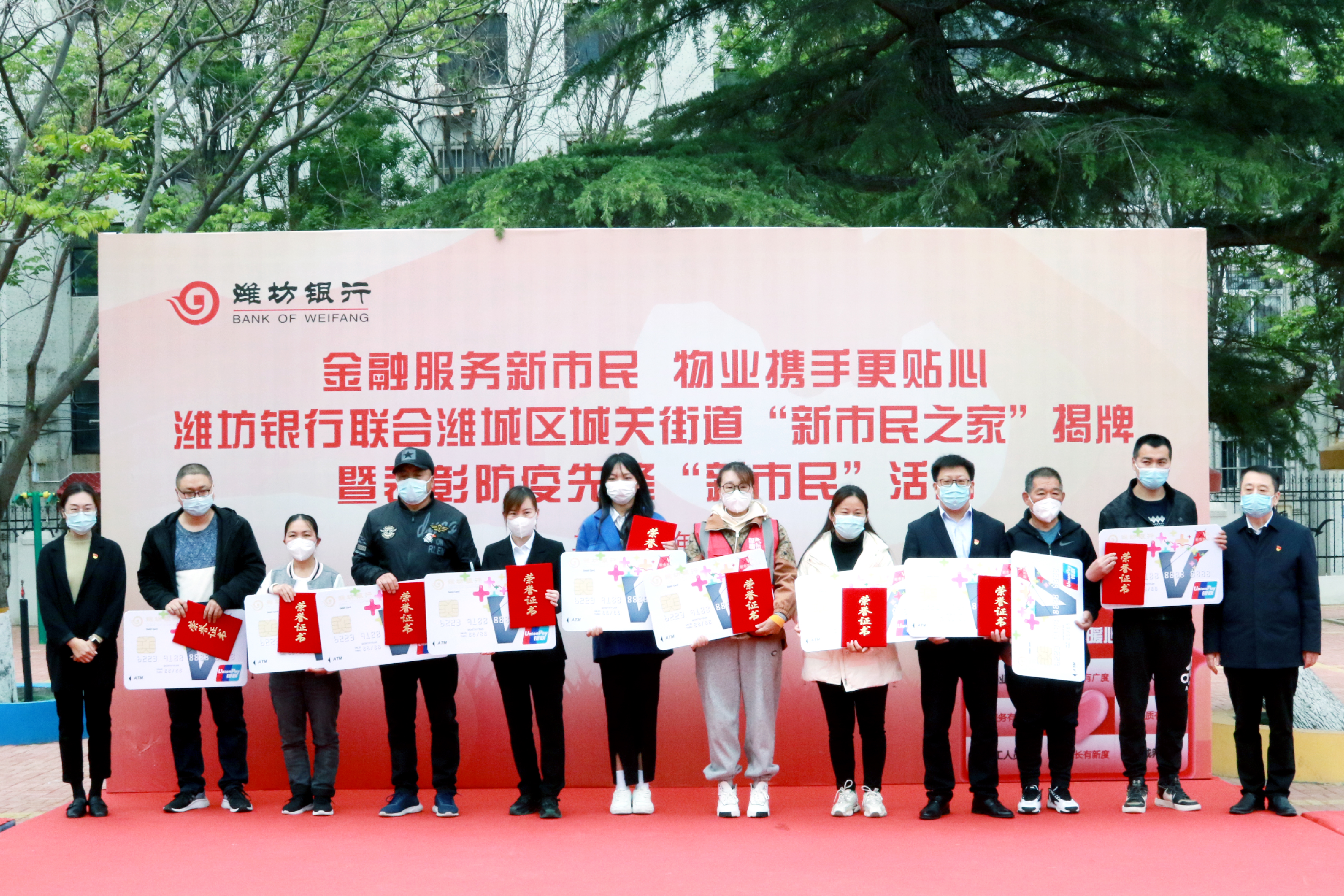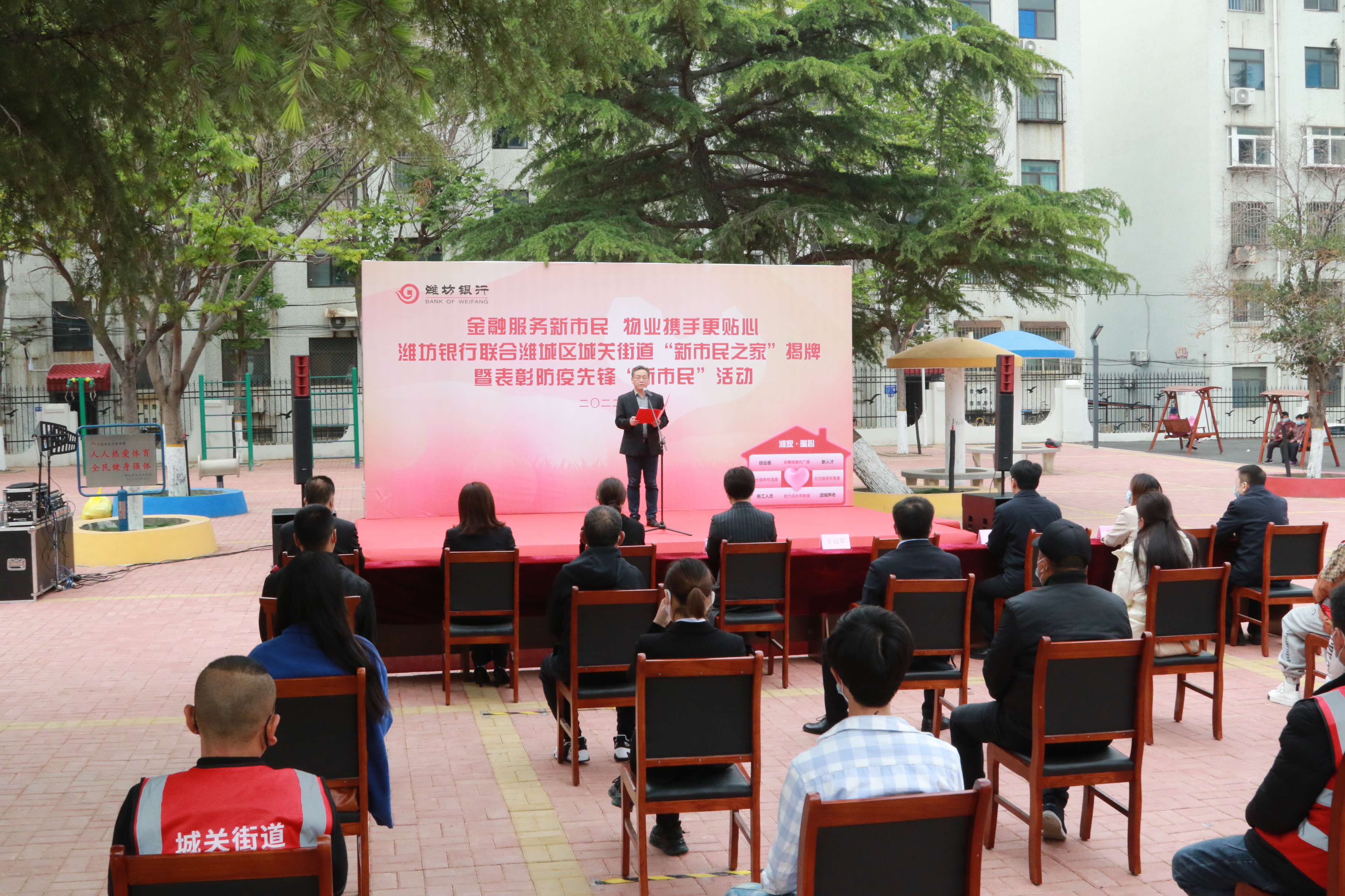 潍城区地方金融监管局、潍城区城关街道、潍坊银行相关领导及部门负责人,在防控疫情工作中做出突出贡献的新市民代表参加了活动。