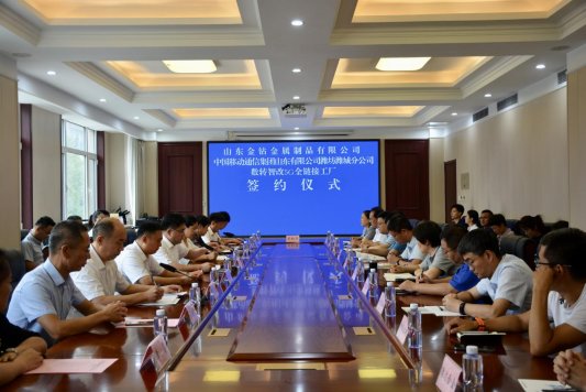 8月17日,山东移动潍坊潍城分公司与山东金钻金属制品有限公司数智化改造协议签约仪式在潍城区乐埠山经济发展服务中心会议室举行。