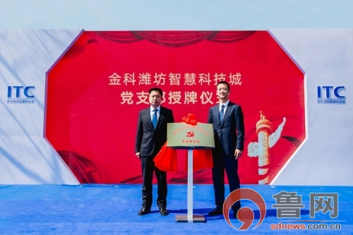 在现场各位嘉宾的见证下,金科潍坊智慧科技城园区党支部正式成立。潍城区委副书记、区长孙修炜和金科产业集团董事长、总裁,金科置信集团董事长杨刚为金科潍坊智慧科技城党支部揭牌。