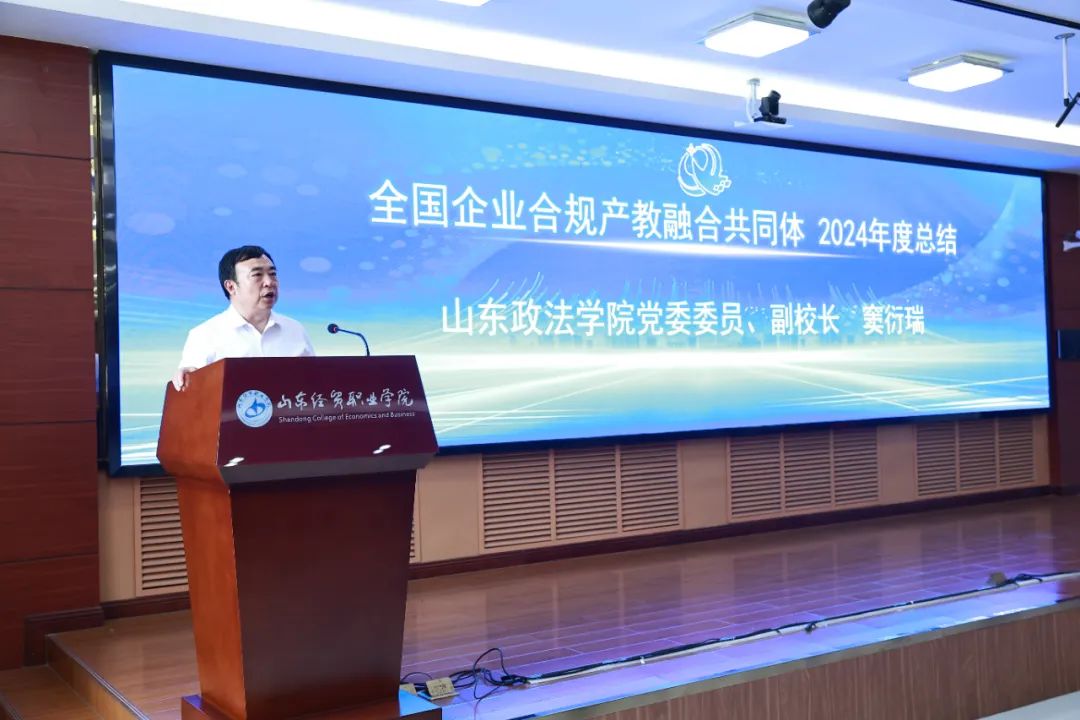 山东政法学院作为2024年度轮值理事长单位,窦衍瑞在年度总结中亮出成绩单:一是组织体系完善,指导设立山东政法学院、山东经贸职业学院“企业合规”研究机构,共建国内高职首家“企业合规产业学院”;二是教学创新突破,出版《劳动合规》专著,首创《企业合规理论与实务》高职公选课及“双师授课”模式,覆盖300余名师生;三是服务能力跃升,为2家上市公司提供合规专项服务,完成山东省29家国企“合规体系有效性评价”;四是标准建设领先,参与起草《数据资产入表会计职业能力评价规范》《数据交易师职业能力评价规范》2项国家标准;五是生态初具规模,全年举办合规培训20余场,覆盖检察、企业等多主体,“企业合规 业财税法融合”论坛引行业关注。