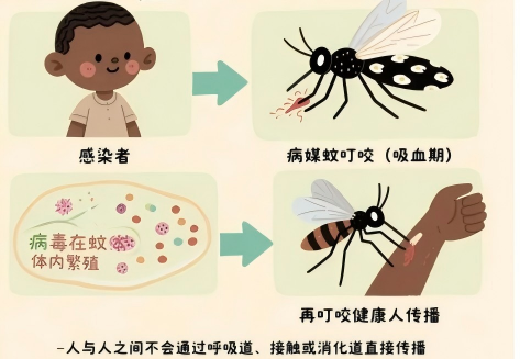 基孔肯雅热不会通过日常的接触(比如握手、拥抱)、一起吃饭、咳嗽、打喷嚏在人和人之间传播。它的传播路径非常明确:蚊子叮咬是唯一的途径。所以,不用害怕和患者正常接触。