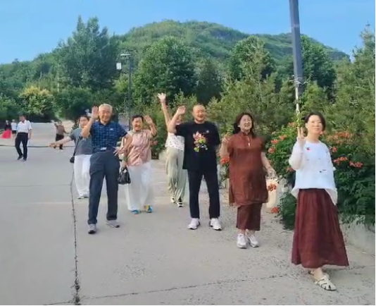 下午,车辆抵达淄博博山聂家峪。暮色中,错落的石屋与远山构成一幅迷人的水墨画卷。入住民宿后,傍晚时分,一场别开生面的“银发音乐会”拉开帷幕——俱乐部成员即兴跳起广场舞,围着篝火追逐游乐。