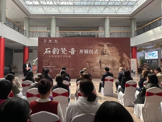 4月16日,“石韵梵音——云冈石窟艺术特展”开展式在潍坊市博物馆主展馆一楼大厅举行。