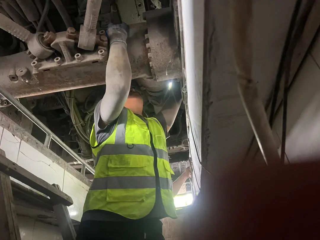 胥纪成坚持每日提前到岗,为每一辆重点车辆细致“体检”。有一次,一辆即将出发的车辆突发空调故障,时间紧迫,胥纪成二话不说,躬身钻进闷热的发动机舱,热浪裹挟着机油味扑面而来,金属部件滚烫灼人,他蜷缩着身躯,在狭小空间里逐一排查线路,汗水如注,顺着脸颊滴落,模糊了视线,他就用沾满油污的袖口匆匆一抹,经过胥纪成的奋力抢修,车辆终于在发车前恢复清凉,而他的工装早已被汗水彻底浸透,凝结出大片白花花的汗渍。