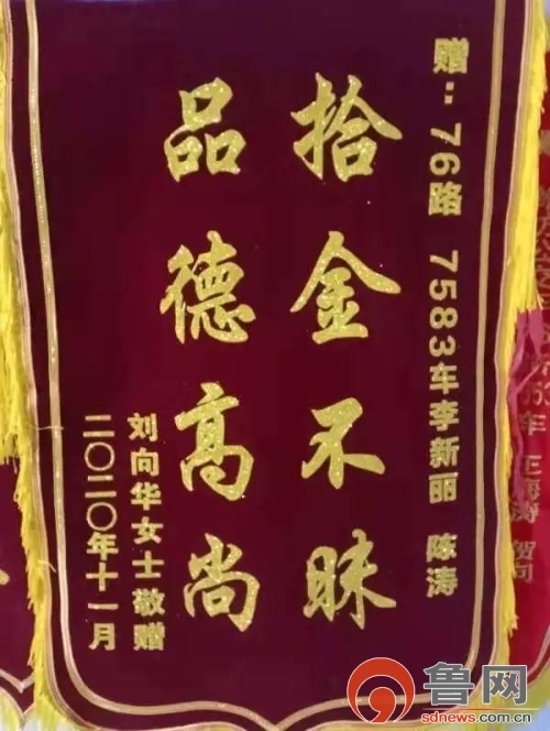 11月15日下午,76路鲁gn7583车驾驶员陈涛和乘务员李新丽像往常一样到达终点站豪杰建设物资贸易广场后。