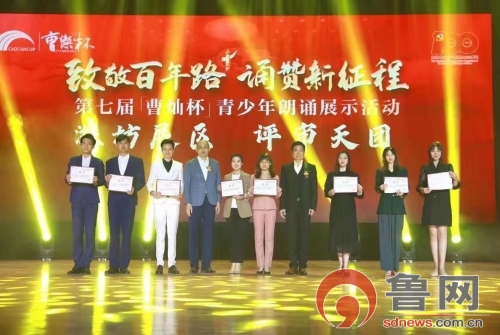 本届“曹灿杯”全国朗诵展示活动的主题为“致敬百年路·诵赞新征程”,为更好弘扬经典文学,潍坊市活动办公室邀请中国传媒大学播音学博士、山东青年政治学院孙良教授,山东省话剧院国家一级演员颜勤分别做朗诵教育主题讲座与现场表演,旨在为全市青少年朗诵爱好者们搭建专业级的展演平台,促进青少年“诵读经典、致敬先贤、传承文化、弘扬传统”,展现潍坊市新时代青少年儿童的良好精神风貌。启动仪式上,颜勤老师还与他的搭档,山东省话剧院演员杨茗羽老师,为全市青少年朗诵爱好者们带来经典文艺话剧作品《一双眼睛两条河》,进行现场演出。