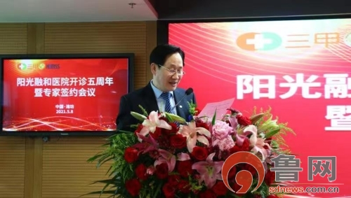 鲁网5月8日讯 5月8日,阳光照耀,暖意融融。阳光融和医院开诊五周年暨院士专家签约会议成功召开。中国工程院院士郑静晨,中国人民解放军总医院副院长何昆仑,原中国研究型医院学会会长、《中国研究型医院》杂志总编辑王发强,中国医学科学院北京协和医学院卫生健康管理政策学院执行院长、国务院参事刘远立,清华大学万科公共卫生与健康学院常务副院长、国家卫生健康委新冠肺炎疫情应对处置工作专家组组长梁万年,首都医科大学附属北京朝阳医院执行院长、党委副书记陈勇等专家受邀参会;潍坊市人大常委会主任苏立科,潍坊市副市长李平及市有关部门负责人、高新区领导出席会议;阳光保险集团副董事长兼阳光融和医院董事长赵宗仁、阳光保险集团董事长助理兼阳光人寿副总裁高永梅等集团领导出席会议;出席会议的还有驻潍高校负责人、潍坊各大医疗机构负责人、阳光保险集团在潍机构负责人等嘉宾;阳光融和医院院长王明晓及院领导班子成员、专家代表、机关中层、抗疫先进、患者代表等参加会议。中央、省、市各级30余家媒体参与现场报道。
