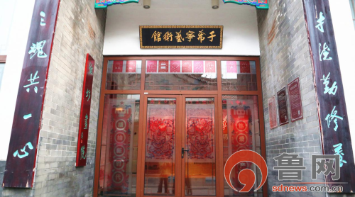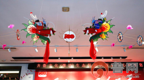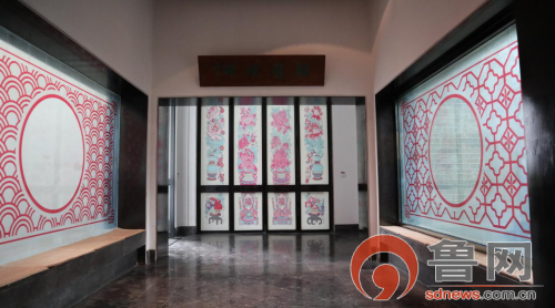 “以往的展览往往只注重展厅布置,我们这次不仅要把展厅做好,还要把整个时空展览化,让观众在展览当天在美术馆的所有空间都置身其中。这应该是一种创意,一种创新!”潍坊市于希宁艺术馆策展工作人员张卫华介绍说,“从大门口开始,我们贴上了大红对联和传统木版年画中的门神,大厅用龙头蜈蚣风筝作为装饰。原来正面的透明玻璃,利用剪纸元素营造出了江南庭院的风格。实现了未入展厅已观展,不知不觉已陶醉的时空效果;做到了展品与展馆的充分融合。”