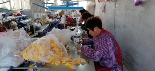 除了自己的农家院用于生产,企业还在村里有专门的生产车间。李海涛说,目前公司在高密市柴沟镇、五莲县等地拥有多个生产基地,而在用工方面,不但有效解决了本村闲散劳动力,周边村庄也有数百人与企业建立了不同的用工方式。