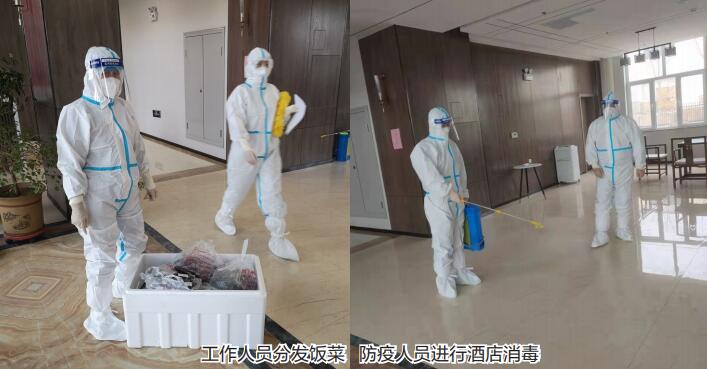 酒店按照防疫要求,设立了“三区二通道”(清洁区、缓冲区、污染区;工作人员通道和隔离人员通道),每一个房间既能满足隔离人员疫情防控期间的生活、通风、供暖等基本要求,又能满足应急消防安全的需要;足额调度疫情防控物资,备足消毒用品、防护服装,对整个酒店进行集中消杀,不留消毒死角;针对隔离的老人和儿童,配备必要的应急治疗药物,制定特殊情况下的应急预案,兜牢健康保障底线。