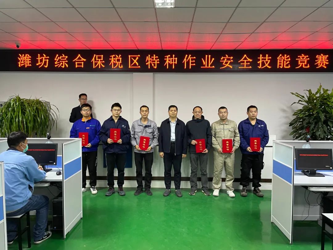 11月16日,潍坊综合保税区特种作业安全技能竞赛在潍坊市安全生产考试中心举办,区内15家企业、62名特种作业人员参加比赛,保税区应急管理中心主要负责同志参加颁奖仪式。